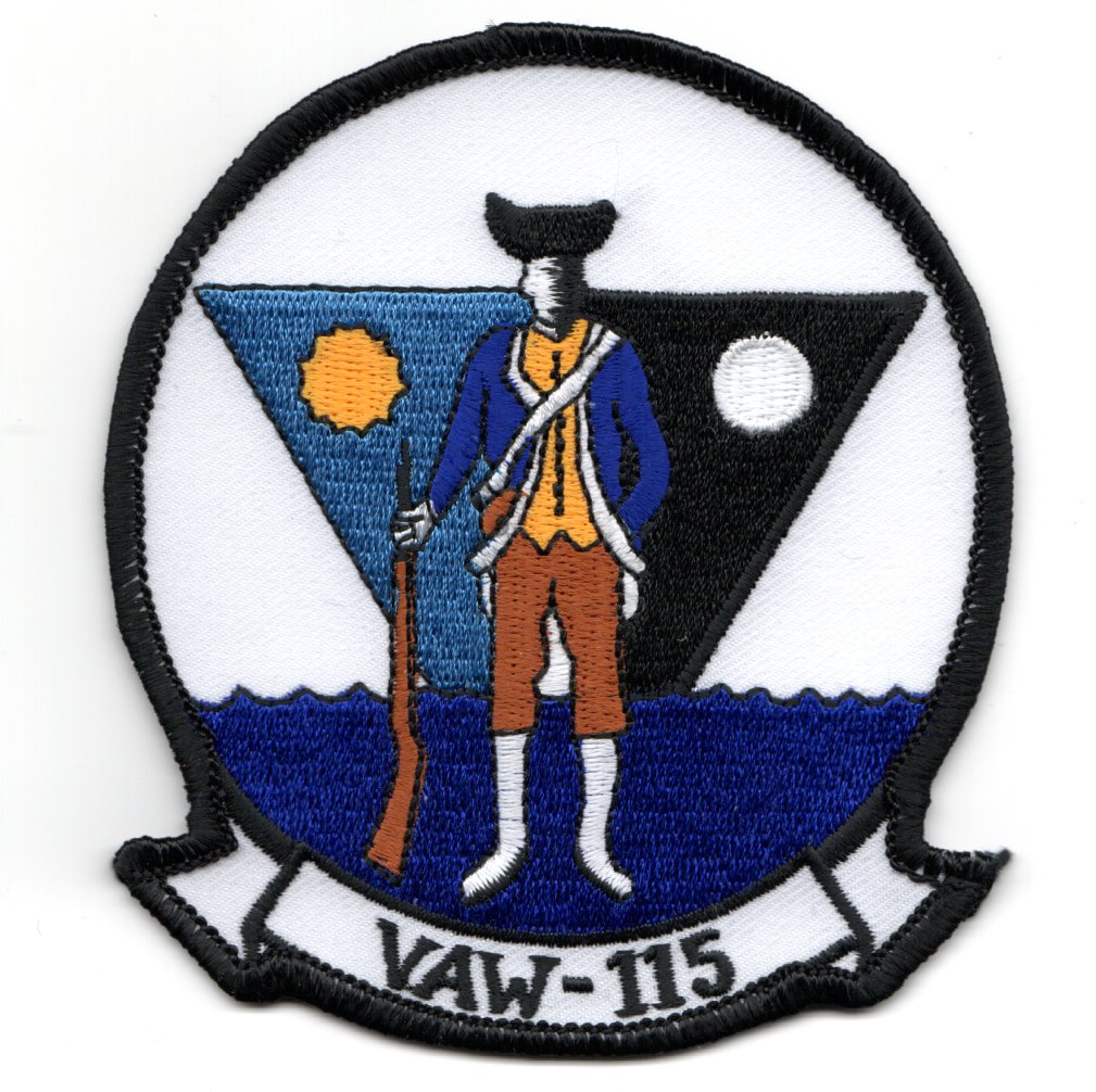 The VAW-115 Liberty Bells are the oldest and only original squadron in Carrier Air Wing FIVE (CVW-5). They joined CVW-5 aboard USS MIDWAY (CV 41) in 1970 and made two combat deployments to the Gulf of Tonkin between May 1971 and April 1973. In September 1973, VAW-115 along with the rest of CVW-5, moved to Yokosuka, Japan, as a component of the U.S. Forward Deployed Naval Forces and established themselves as the only carrier and air wing to be home ported outside the continental United States. Currently, they are relocating to NAS Pt. Mugu, CA to transition into the “D” model. This is the historical version of their squadron patch depicting a ‘Minuteman’ (Paul Revere) and does not come with velcro attached.