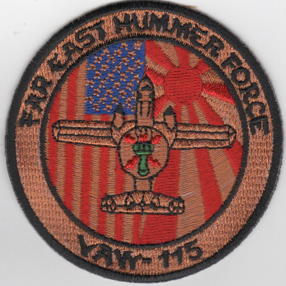 The VAW-115 Liberty Bells are the oldest and only original squadron in Carrier Air Wing FIVE (CVW-5). They joined CVW-5 aboard USS MIDWAY (CV 41) in 1970 and made two combat deployments to the Gulf of Tonkin between May 1971 and April 1973. In September 1973, VAW-115 along with the rest of CVW-5, moved to Yokosuka, Japan, as a component of the U.S. Forward Deployed Naval Forces and established themselves as the only carrier and air wing to be home ported outside the continental United States. Currently, they are relocating to NAS Pt. Mugu, CA to transition into the “D” model. This patch says “FAR EAST HUMMER FORCE” across the top and is the desert version of that patch.