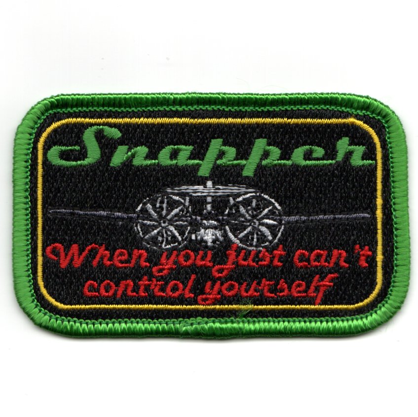 For the squadron’s history, see above (or online). This patch was created for the VAW-115 Liberty Bells and says “SNAPPER, WHEN YOU JUST CAN’T CONTROL YOURSELF’…..another story I am not privvy to! This patch does not have velcro.