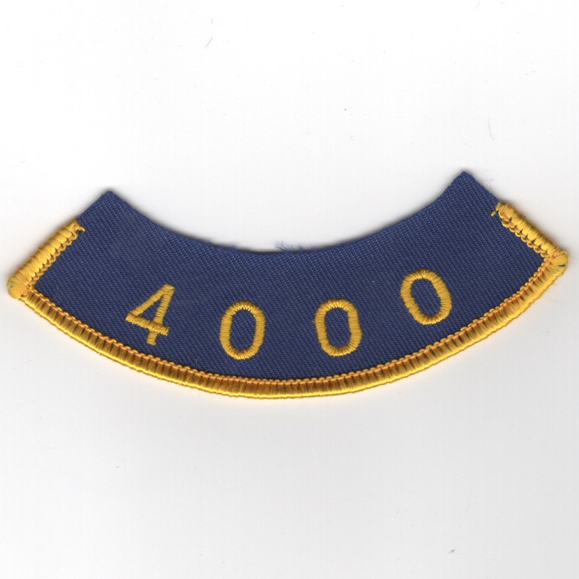 (Direct from the Squadron): This is the ‘4000 HOURS’ Rocker that is worn under the squadron patch when the aircrew member earns 4000 flight hours in the E-2C. It doesn’t have velcro attached, as it was meant to be sewn on the flight jackets.
