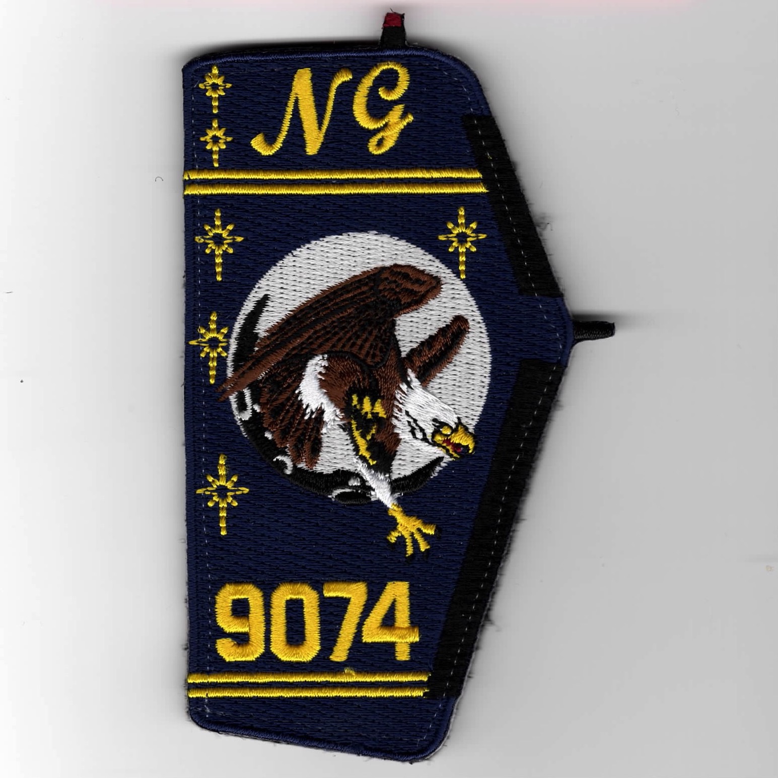 (Another AV8RSTUFF Creation): This is the tailfin patch created by the VAW-117 Wallbangers for their 2023 CAG Bird, NG-9074. This is the blue version of their TAIL FIN patch and does come with velcro attached.