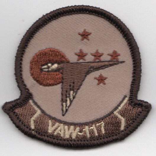 This is the VERY SMALL desert version of the squadron patch for the VAW-117 “Wallbangers” that fly the E-2C out of NAS Miramar, CA. They were established in July 1974 and participated in the Persian Gulf operations in mid-1991. I believe this is an “inside joke” just for the squadron “new guys”, making them wear these until they earn their squadron colors……It does not come with velcro already attached.