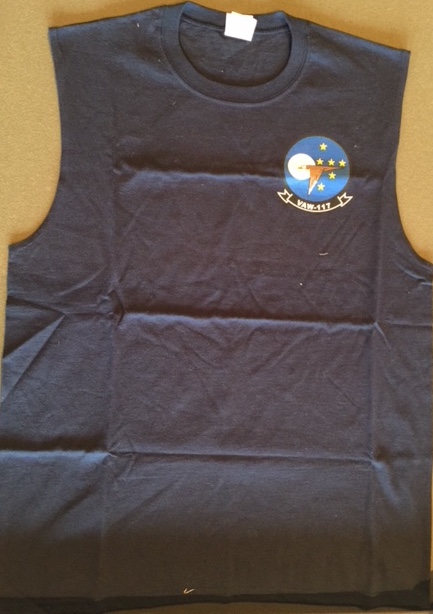 (Direct from the Squadron) This is the VAW-117 Squadron T-shirt they asked us to sell for them. It is the sleeveless, blue version. Shown here is the front of the shirt and below is the back of the shirt.