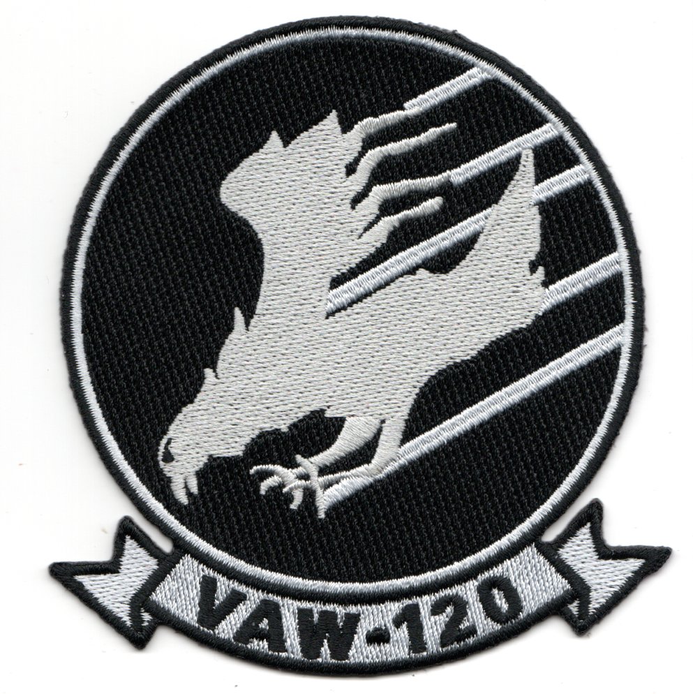 (Another AV8RSTUFF Creation): The “Cyclones” of VAW-120 fly the E-2C Hawkeye out of NAS Norfolk, VA and is the Fleet Replacement Squadron (FRS) for the E-2C / E-2D Hawkeyes, as well as the C-2A Greyhounds. This is the “black-eyed” version of their squadron patch, which is their “standard” patch worn every day and does not come with velcro attached.