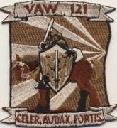 The “Bluetails” of VAW-121 fly the E-2C Hawkeye out of NAS Norfolk, VA onboard the USS Kennedy (CV-67) as part of Airwing 7. They were established in April 1967. This is there deployed desert patch. This is the desert version of their det patch and it says VAW 121 and “CELER, AVDAX, FORTIS” across the bottom. It does not come with velcro attached.