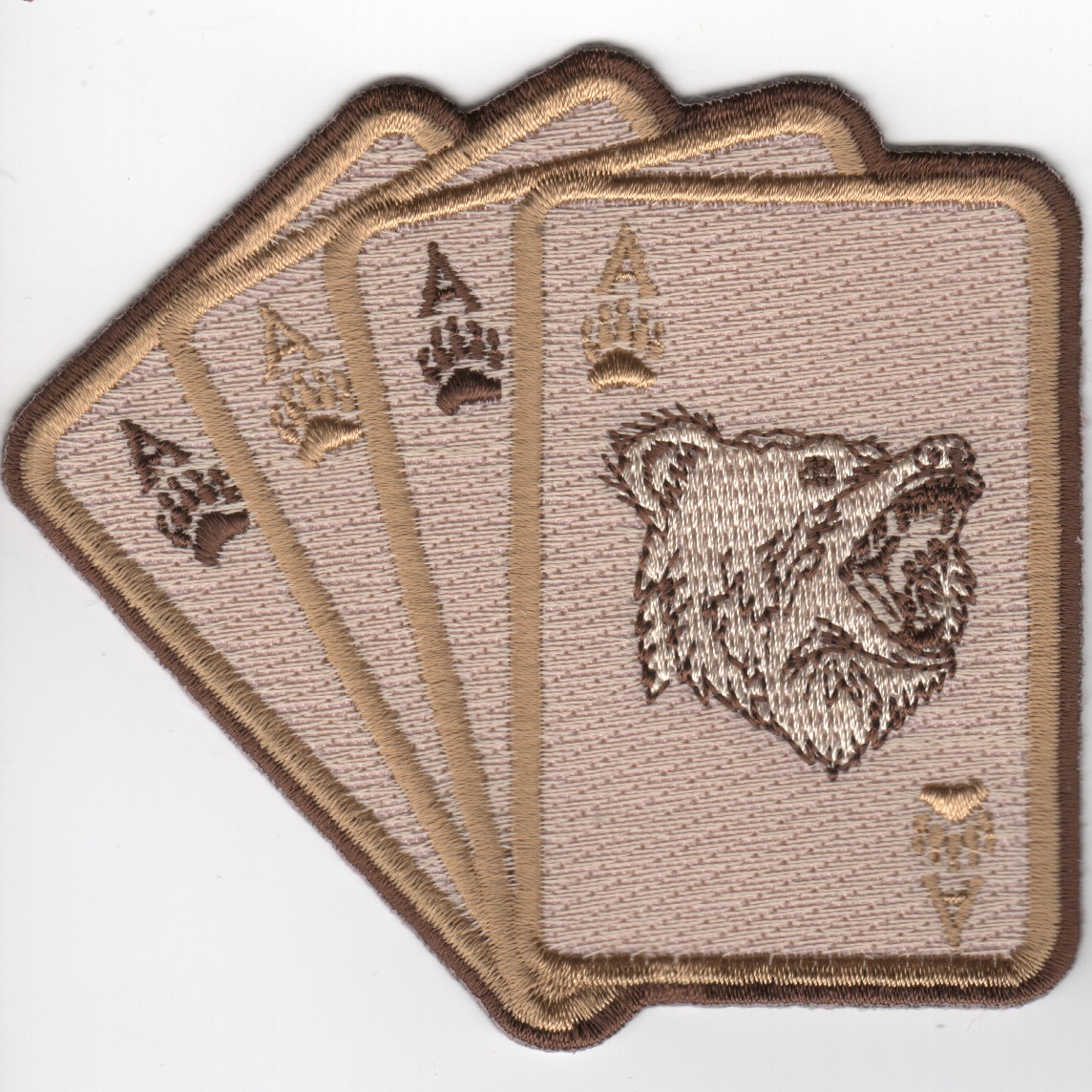 The VAW-124 “Bear Aces” fly the Grumman E-2C Hawkeye out of NAS Norfolk, VA. They were established in September 1967 and fly as part of CVW-8 on the East Coast airwings. They participated in Desert Storm aboard the USS Roosevelt (CVN-71). This is the desert version of the “Bear Aces” patch showing 4 Aces with the “Bear” (mascot) and does not come with velcro attached.