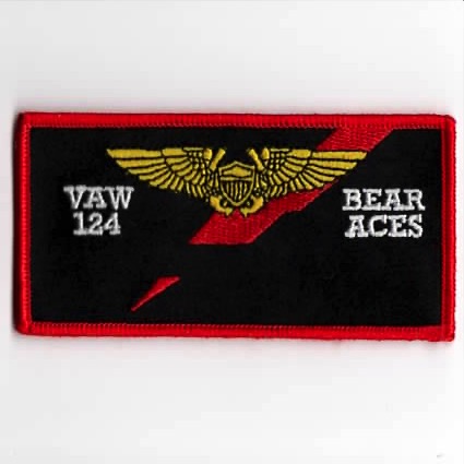 This is the color version of the nametag worn by the Naval Flight Officers for the VAW-124 *BEAR ACES*. This does not come with velcro attached so you can have your info embroidered onto it.