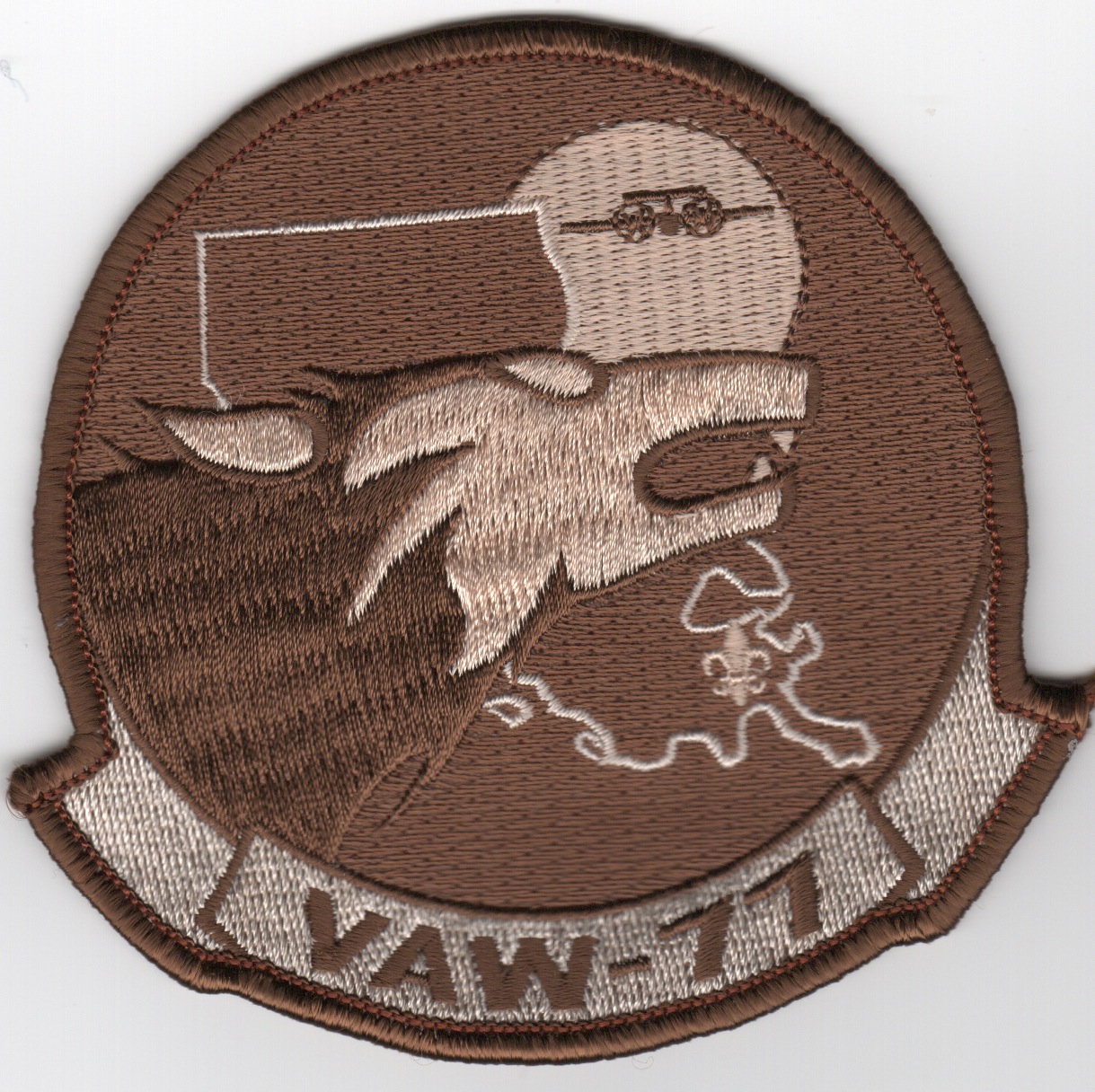 Carrier Airborne Early Warning Squadron 77 (VAW-77) “Nightwolves” was an aviation unit of the US Navy’s Reserve based (initially) at NAS Atlanta, but in 2008 transitioned to NAS Joint Reserve Base New Orleans after the BRAC’s decision to close the GA base….they were in operation from 1995 to 2013. It comprised the U.S. Navy’s only fully dedicated counter-narcotics squadron. This is the desert version of their “HAWKEYE-in-SUN” squadron patch and does not come with velcro attached.