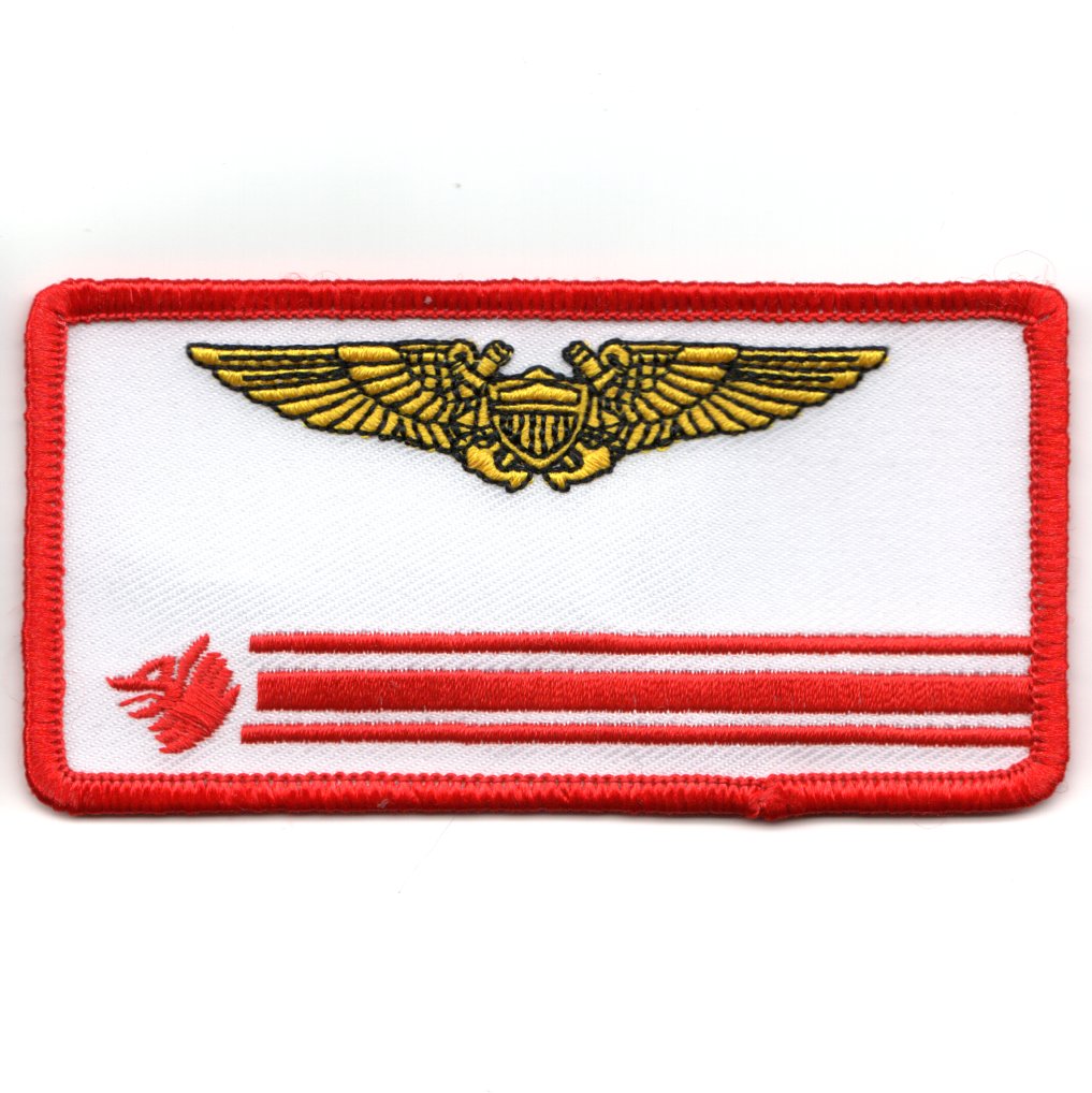 This is the red/white version of the NAVAL FLIGHT OFFICER (RIO/WSO) nametag for those that flew the F-14 Tomcat for the VF-1 WOLFPACK. This nametag does not have velcro so that you can have it embroidered (or I can for you for an additional fee the embroiderer charges me).