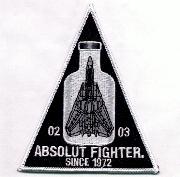 Callsign “GUNFIGHTER”, the Grim Reapers of VF-101 are the only training squadron for the F-14 Tomcat now, and are located on the East coast at the Master Jet Base, NAS Oceana, VA. This is the class patch for the graduating class of Tomcat Pilots and RIOs that started in February 2003 and it says “ABSOLUT FIGHTER since 1972” along the bottom.