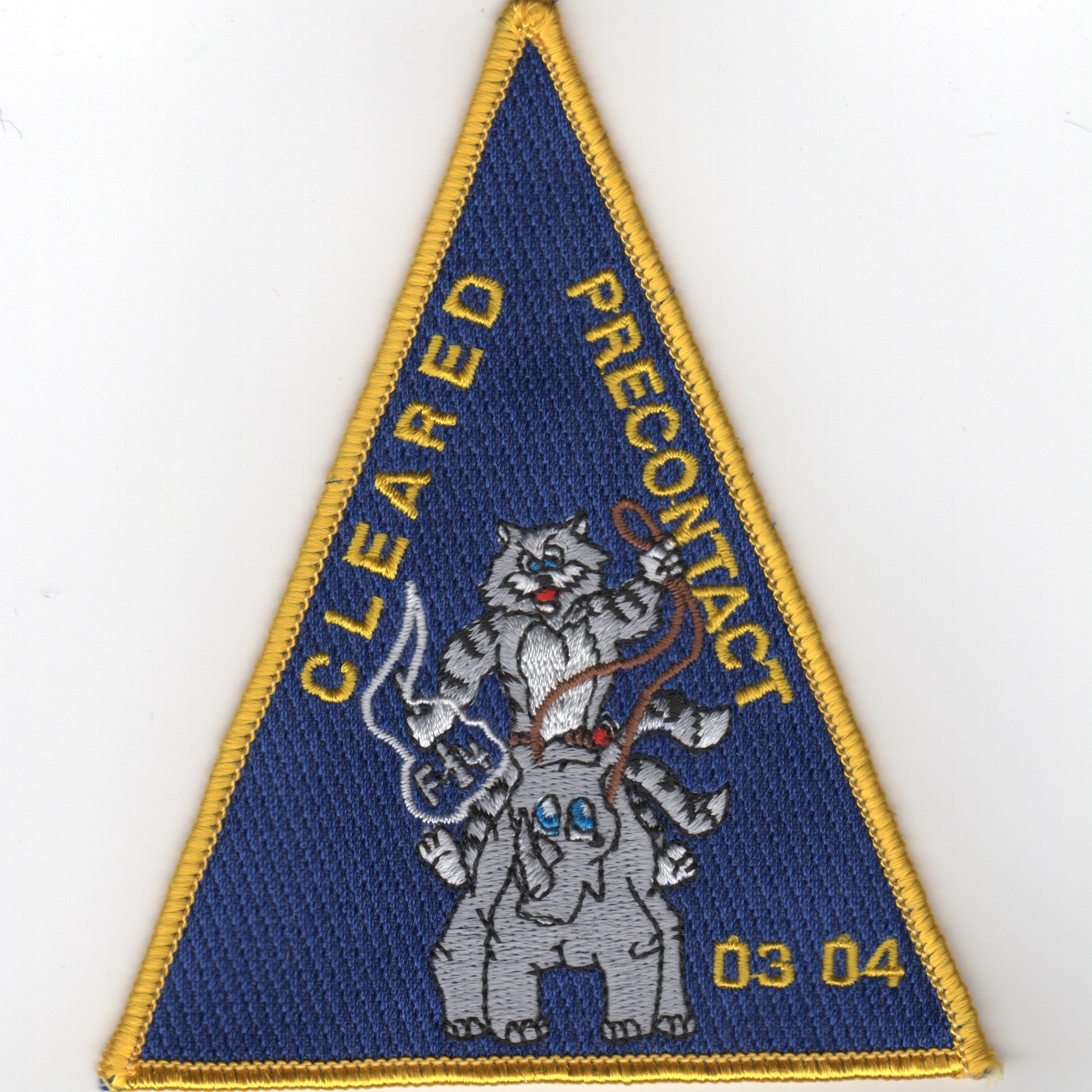 Callsign “GUNFIGHTER”, the Grim Reapers of VF-101 were the only training squadron for the F-14 Tomcat now, and are located on the East coast at the Master Jet Base, NAS Oceana, VA. This is the OFFICIAL class patch for the graduating class of Tomcat Pilots and RIOs that started in March 2004 and it says “CLEARED PRECONTACT” along the sides with the Tomcat riding a Rhino. This patch does not come with velcro attached