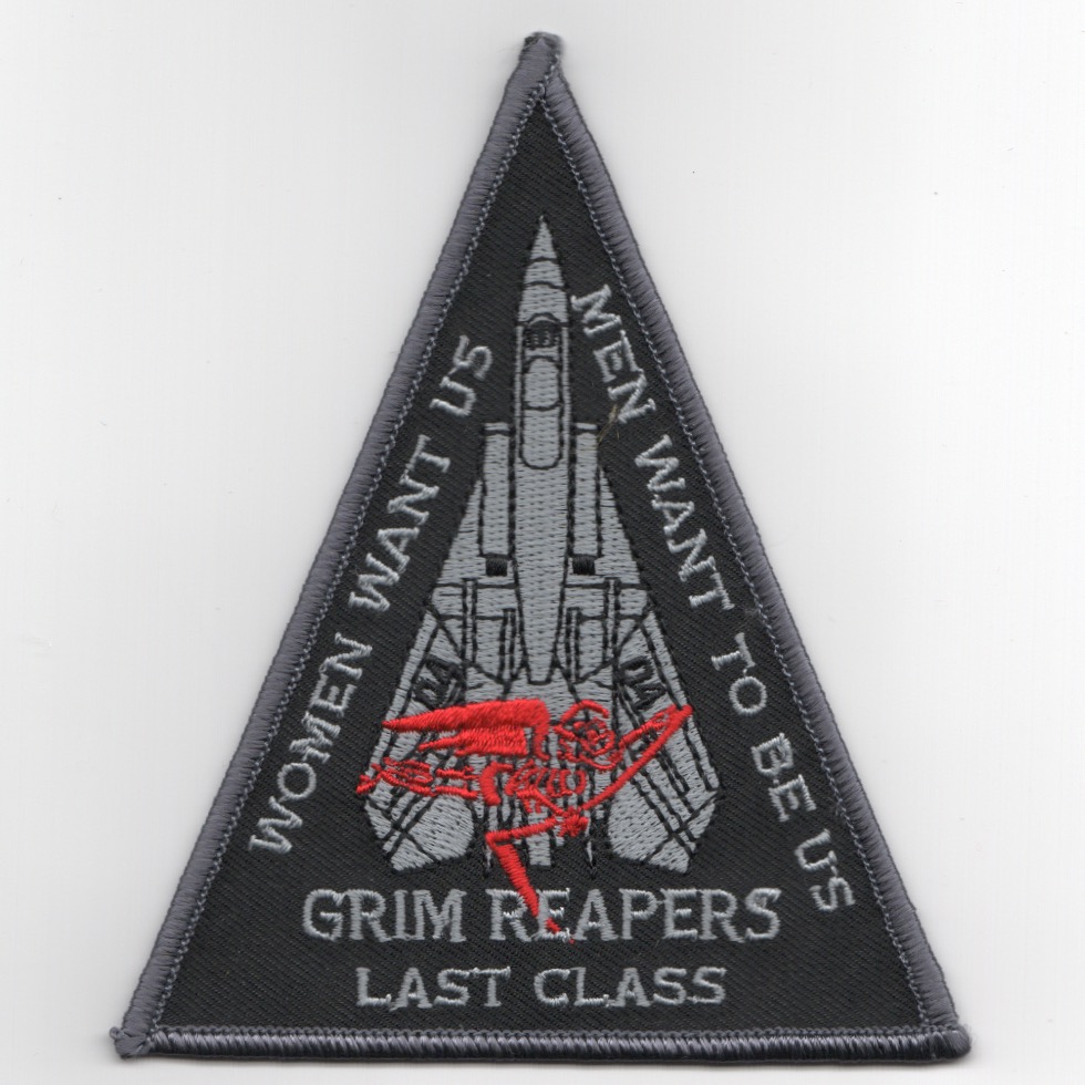 Callsign “GUNFIGHTER”, the Grim Reapers of VF-101 are the only training squadron for the F-14 Tomcat now, and are located on the East coast at the Master Jet Base, NAS Oceana, VA. This is the class patch for the graduating class of Tomcat Pilots and RIOs that started in April 2004 and it is the GRIM REAPERS LAST CLASS!! Sad to say…………