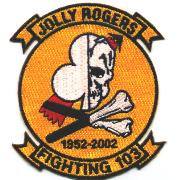 VF-103 was established in May 1952 and began the transition from F-4S Phantoms to the F-14A Tomcat in January 1983. The ‘Sluggers’ were with the USS Saratoga in CVW-17 for the majority of her time, before switching to the USS Enterprise. VF-103 adopted the “Skull and Crossbones” of VF-84 to continue their tradition. This is one oftheir 50th anniversary patches.