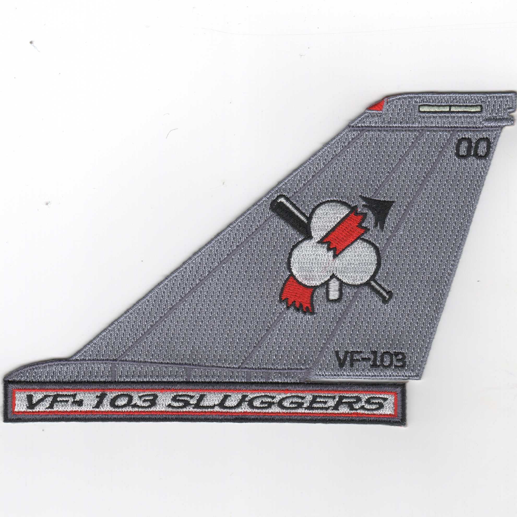 This is the ‘Light Gray’ version of the Sluggers tailfin with the squadron desgination along the bottom. This patch does not come with velcro already attached.