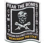 VF-103 was established in May 1952 and began the transition from F-4S Phantoms to the F-14A Tomcat in January 1983. The ‘Sluggers’ were with the USS Saratoga in CVW-17 for the majority of her time, before switching to the USS Enterprise. VF-103 adopted the “Skull and Crossbones” of VF-84 to continue their tradition. This patch is a commemmorative patch for the tragedy that occurred over in Yemen.