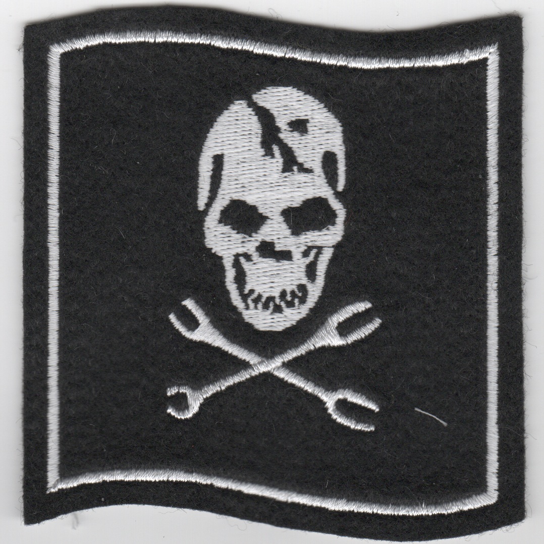 VF-103 was established in May 1952 and began the transition from F-4S Phantoms to the F-14A Tomcat in January 1983. The ‘Sluggers’ were with the USS Saratoga in CVW-17 for the majority of her time, before switching to the USS Enterprise. VF-103 adopted the “Skull and Crossbones” of VF-84 to continue their tradition. VF-103 had one of their TARPS-birds shot down by an optical SA-2 derivative in Desert Storm with the pilot being rescued and the RIO becoming a POW. This is the patch worn by the enlisted maintainers that were responsible for a particular jet. It was known as their “bird”, and it is quite an honor to have one that you are responsible for. This version of the P.C. patch feels like “felt” and shows “wrenches” instead of “BONES” for the squadron logo. This patch does not come with velcro attached.
