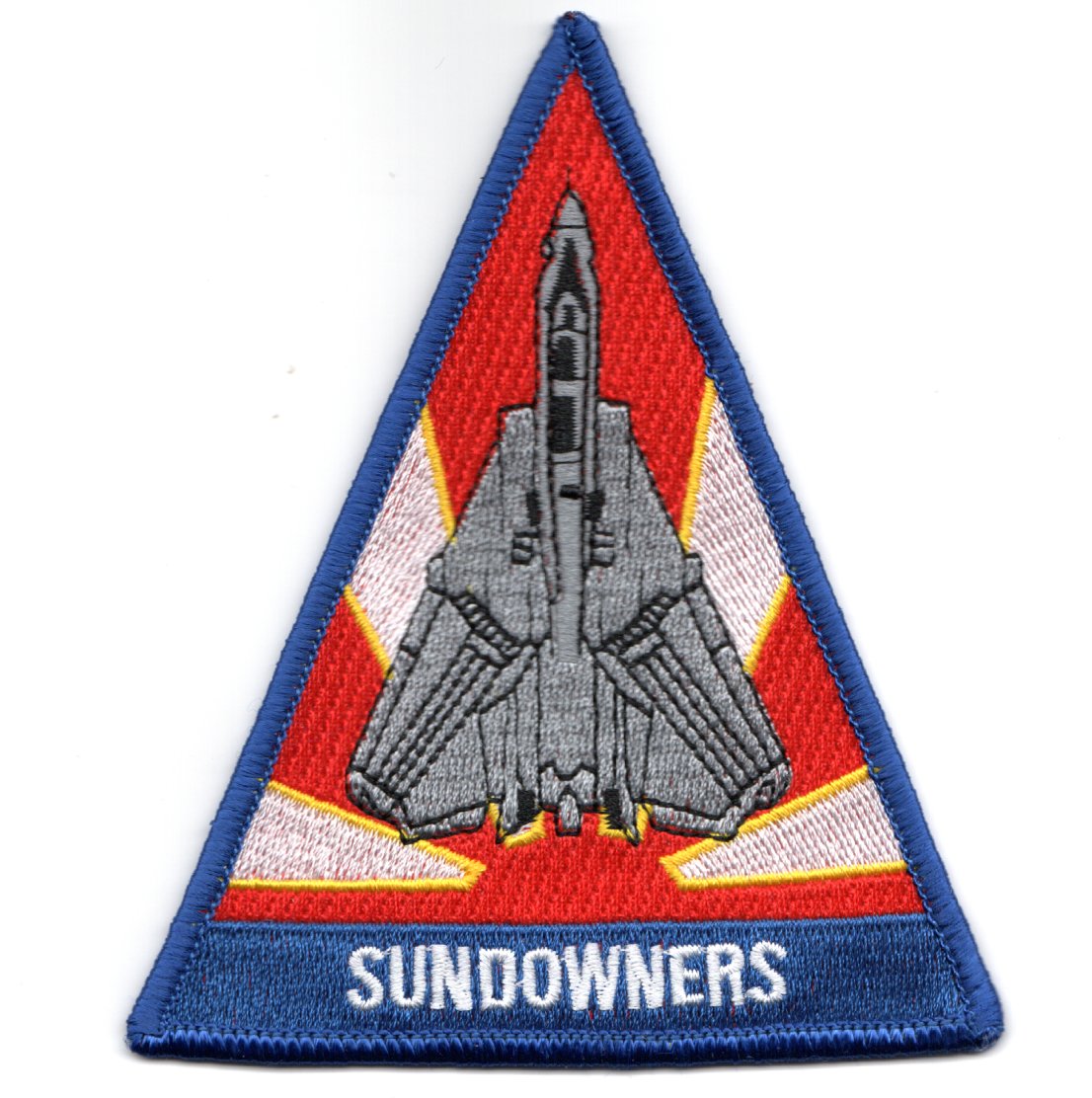 The Sundowners were established in June 1956 flying F-4J Phantoms until 1978 when they replaced it with the F-14 Tomcat. It’s decom ceremony was held on 16 Feb 95 in Miramar along with VF-51, cancelling the plans of these two squadrons to be the first F-14D models. This was the “SUNSET” (red/white sun rays) version of their aircraft triangle they wore on the right sleeve of their flight suits.