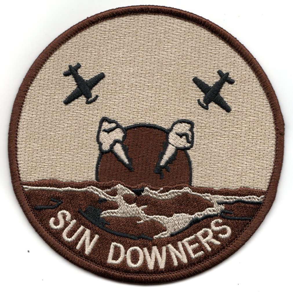 (Another AV8RSTUFF Creation): The Sundowners were established in June 1956 flying F-4J Phantoms until 1978 when they replaced it with the F-14 Tomcat. It’s decomm ceremony was held on 16 Feb 95 in Miramar along with VF-51, cancelling the plans of these two squadrons to be the first F-14D models. This is the desert version of their squadron patch and does not come with velcro attached!