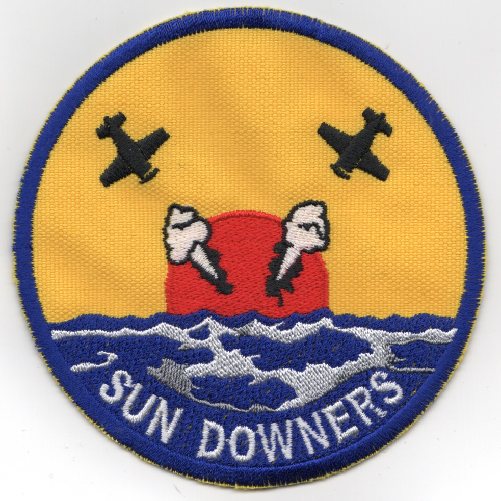The Sundowners were established in June 1956 flying F-4J Phantoms until 1978 when they replaced it with the F-14 Tomcat. It’s decomm ceremony was held on 16 Feb 95 in Miramar along with VF-51, cancelling the plans of these two squadrons to be the first F-14D models. This patch was found in a small Korean embroidery sweat-shop in limited quantities, has the “in-theater-made” feel to it, and does not come with velcro attached!