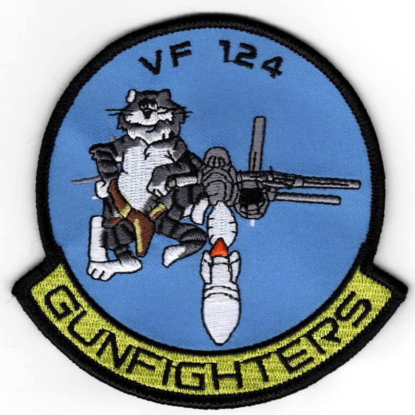 The ‘Gunfighters’ of VF-124 were established as VF-53 in August ’48, then redesignated to their current designation in April ’58. They were the West Coast RAG (Training Squadron) that trained the pilots and RIOs for the F-14 Tomcat. They were decommissioned when all the CONUS Tomcat squadrons were moved to the Master Jet Base NAS Oceana, VA. This is their “FELIX” patch and does not come with velcro attached.