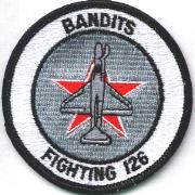 Fighter Squadron 126 (VF-126) was an aggressor squadron of the U.S. Navy. The squadron was originally established as Attack Squadron 126 (VA-126) on 6 April 1956, then was redesignated VF-126 on 15 October 1965 and disestablished on 1 April 1994. This is the white, round version of their ‘bullet’ patch for their A-4 Skyhawk aircraft, and does not come with velcro attached.
