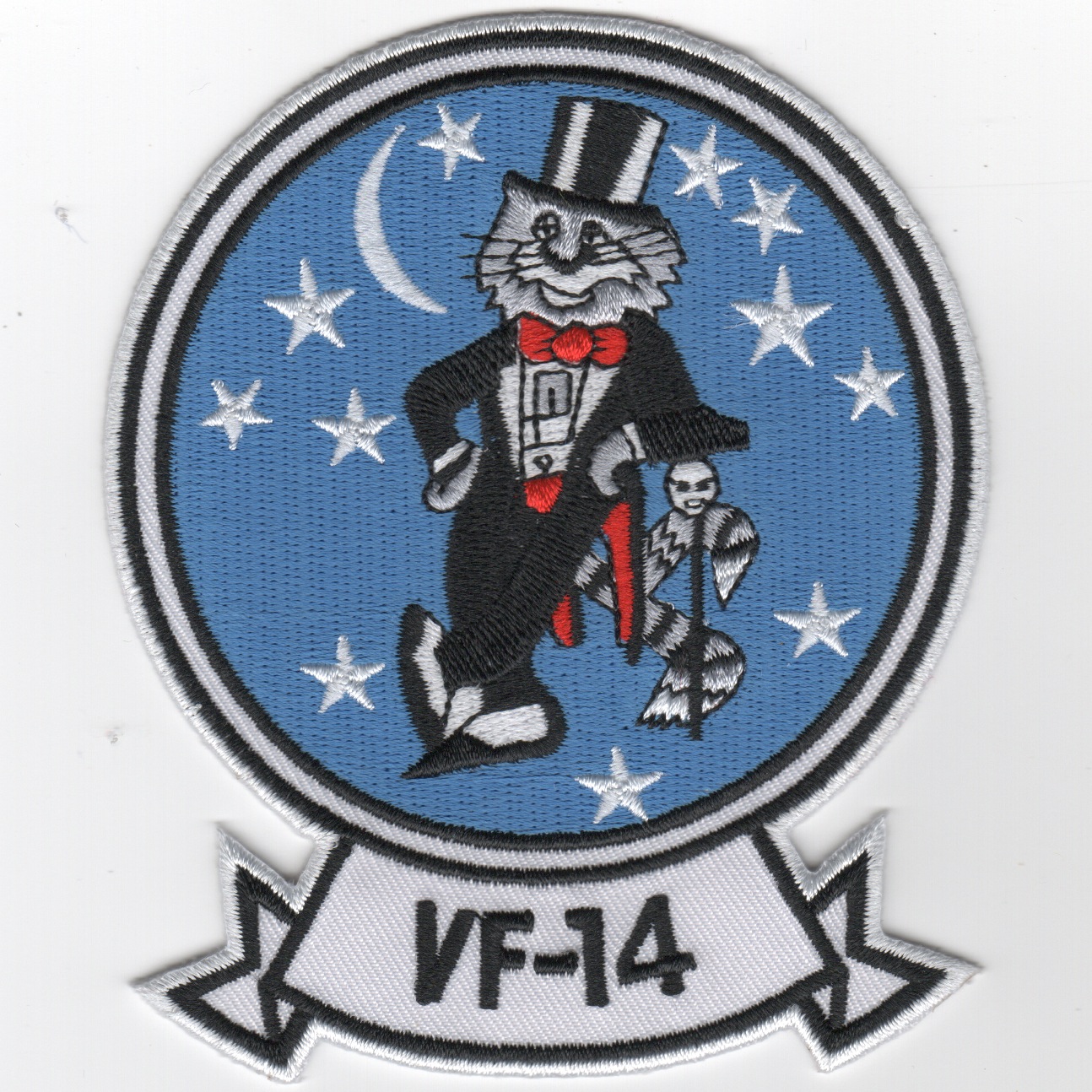 The “Tophatters” of VF-14 from NAS Oceana fly the F-14A Tomcat and is the oldest US Navy squadron with a continuous history dating back to September 1919. They received their latest aircraft in January 1973, replacing the F-4B Phantoms. This patch is the “old style” they used to have before they switched to the TopHat design and does not come with velcro attached.