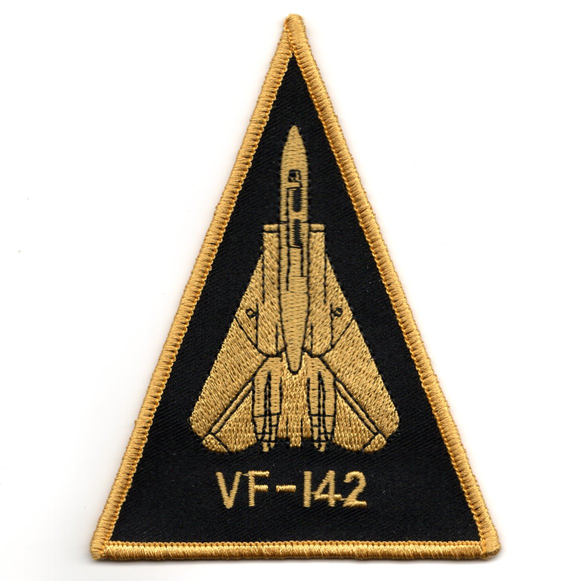 Established as VF-193 in August 1948, the “Ghostriders” were redesignated as VF-142 on 15 October 1963 and began flying the F-14 in 1974. Transitioning to an East Coast squadron at NAS Oceana, VA, they were attached to the USS America (CV-66) for their first deployment with CVW-6, then were transferred to the USS Eisenhower (CVN-69) and CVW-7. This was their aircraft triangle patch with the gold threaded border and does not come with velcro attached.