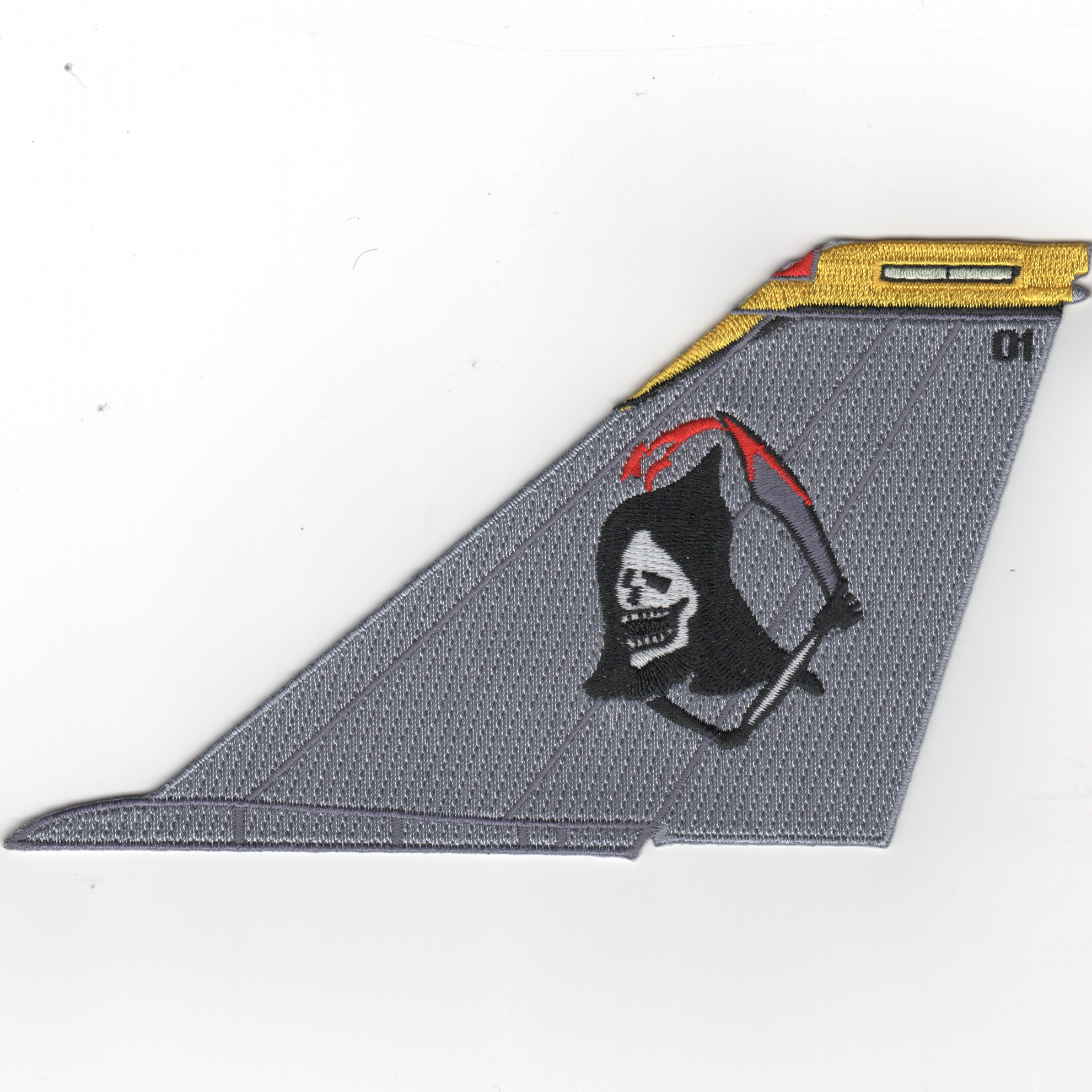 This is the ‘Dark Gray Grim Reaper’ version of the Ghostriders tailfin without any squadron desgination along the bottom. This patch does not come with velcro already attached.