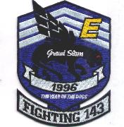 The ‘Pukin Dogs’ of VF-143 flew the F-14Bs out of NAS Oceana, VA. They did their maiden F-14 voyage onboard the USS America in 1976. This is the squadron version of the “award” patch given to them for their excellence. This is the 1996 Clifton Battle ‘E’ patch.