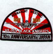 The ‘Black Knights’ of VF-154 fly the F-14A Tomcat as part of CVW-5 onboard the USS Kitty Hawk and home-based out of NAF Atsugi, Japan. This is the 10th Anniversary patch of their “Permanent WestPac” location being in Japan.