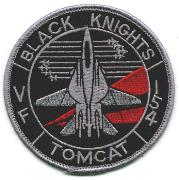 The VF-154 ‘Black Knights’ were established in February 1951, then designated as VF-154 in February 1953. They flew the F-4S Phantom before transitioning to the F-14A Tomcat. This version of the aircraft patch shows the wings swept forward, as if they were in the “transition” phase of flight.