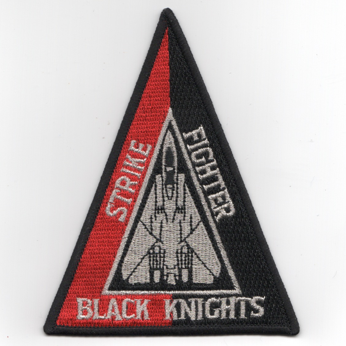 The VF-154 ‘Black Knights’ were established in February 1951, then designated as VF-154 in February 1953. They flew the F-4S Phantom before transitioning to the F-14A Tomcat. This is the color version of the OLD aircraft triangle design. This is the red/black version with the silver F-14 Planform triangle patch worn on the right shoulder of the aircrew that fly the Tomcat and does not come with velcro attached.