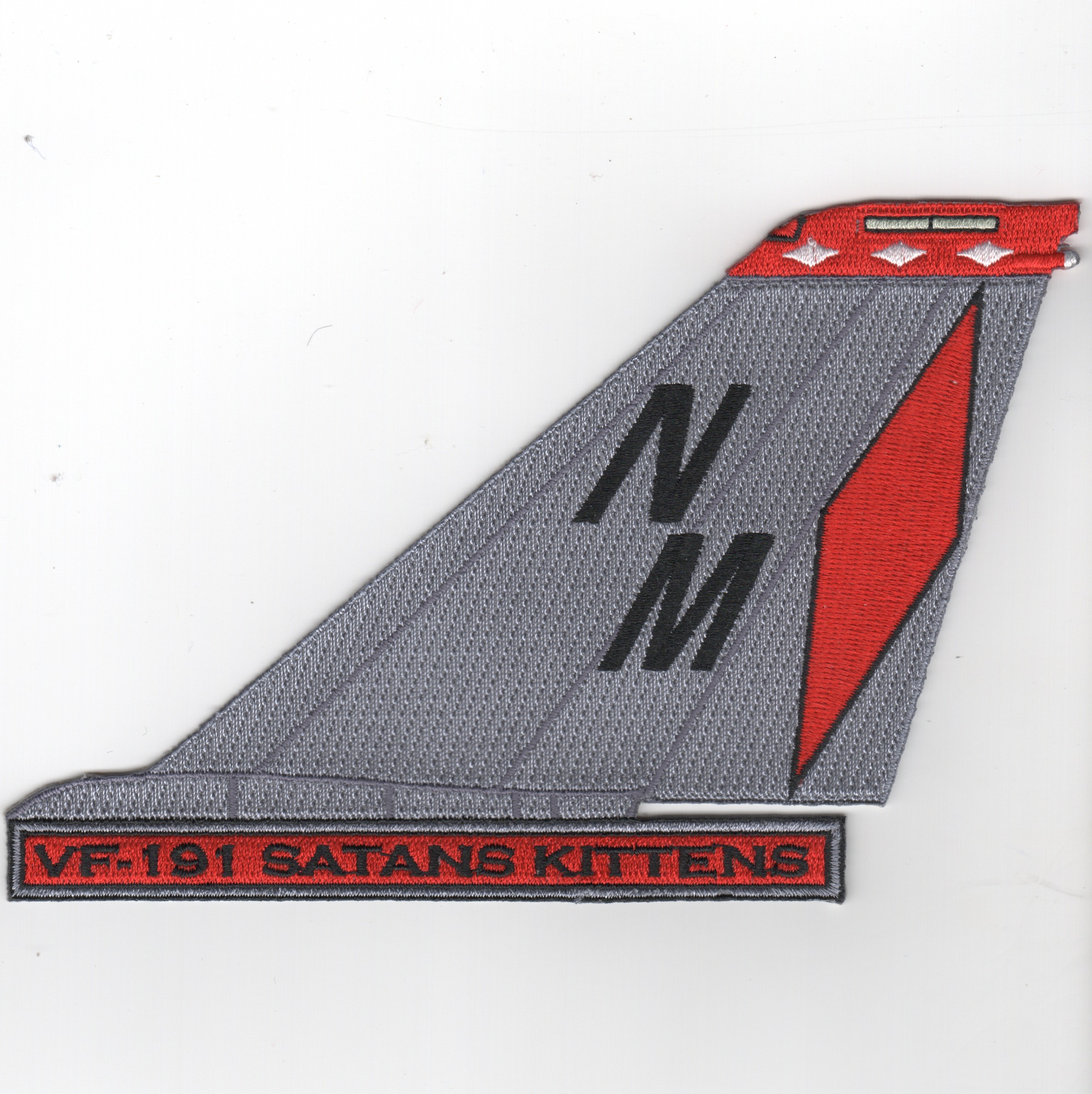 This is the ‘Red Diamond’ version of the “”””Satan’s Kittens”””” tailfin with the squadron desgination along the bottom. This patch does not come with velcro already attached.