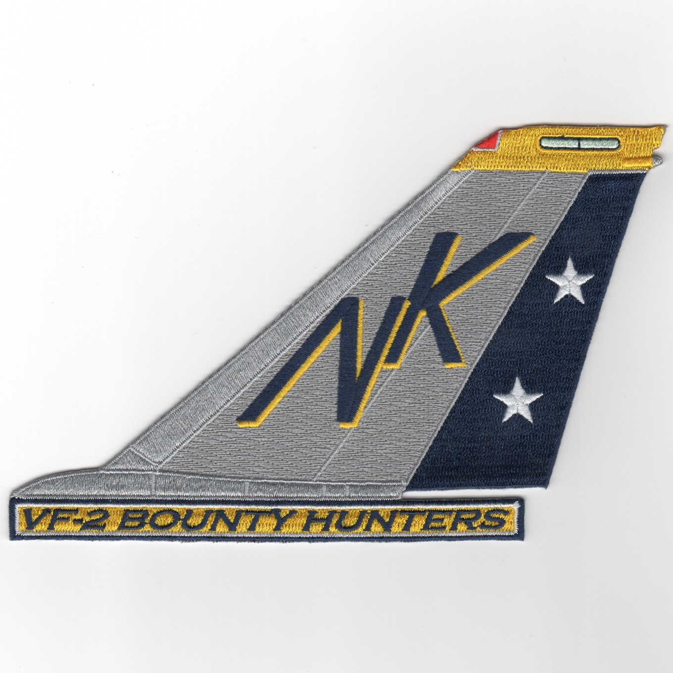 This is the “”””NK”””” (with Stars on the Rudder) verions for the F-14 Tomcat Tail Fin for VF-2 “”””Bounty Hunters””””. This patch does have the “”””text box”””” along the bottom.
