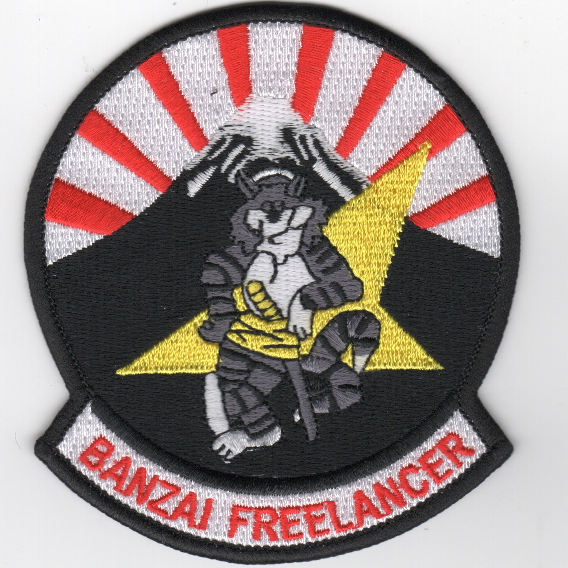 The ‘Freelancers’ of VF-21 were established in March 1944 as VF-81. After several redesignations, they eventually received their final designation in July 1959. They flew the F-4N Phantoms until receiving their Tomcats in November 1983. They were the first Tomcat squadron to reach the Gulf for Operation Desert Shield, but left before the Conflict began. This is the medium sized (3.5″) version of their “BANZAI” Felix patch. It does not come with velcro attached.