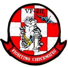 The “Flying Checkmates” of VF-211 fly the F-14A Tomcat from NAS Oceana, VA. They trace their roots to VB-74, established in May 1945, but acquired their current designation in March 1959. They received their F-14As at Miramar in December 1975 after having operated the F-8J Crusaders for many years. The maiden Tomcat flight was 23 December 1975. She is attached to CVW-9 aboard the USS Stennis (CVN-74).