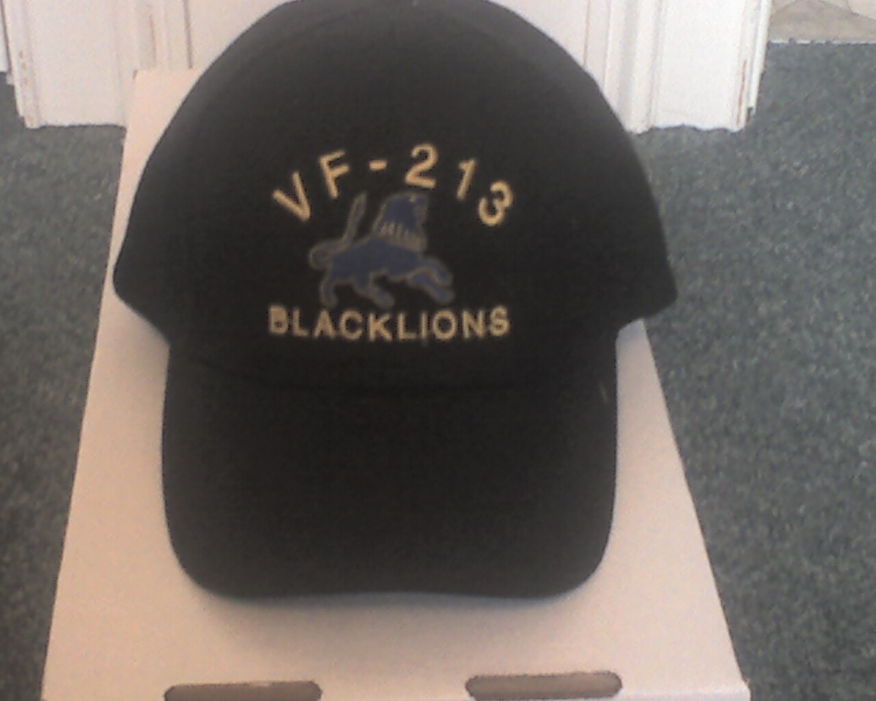 These are the official ballcaps worn by all the members of VF-213 Black Lions stationed at NAS Oceana, VA. The squadron logo is directly embroidered onto the front.