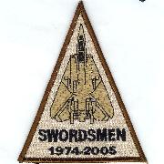 The “Swordsmen” of VF-32 fly the F-14A Tomcat out of NAS Oceana, VA and trace their history back to Feb 1945. They transitioned from the F-4B Phantom to the F-14A Tomcat in 1974, being one of the first to do so. This is the squadron that shot down 2 Libyan MiG-23 “Floggers” after being engaged over international waters. They participated in Operation Desert Shield/Storm, and claim to be the last Navy aircrew over Baghdad. This is the desert version of their last aircraft patch created to commemorate the end of the Tomcat with the dates 1974-2005.