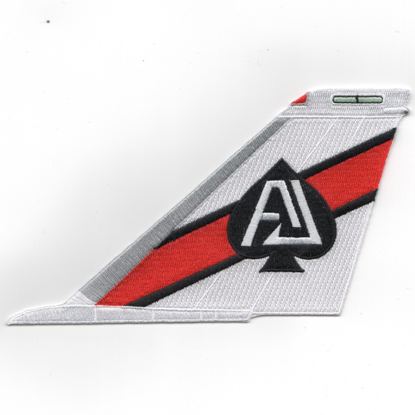 This is the Tailcode ‘AJ’ red-white version of the F-14 Tomcat Tail Fin for VF-41 “”””Black Aces””””. This one does not have text or velcro.