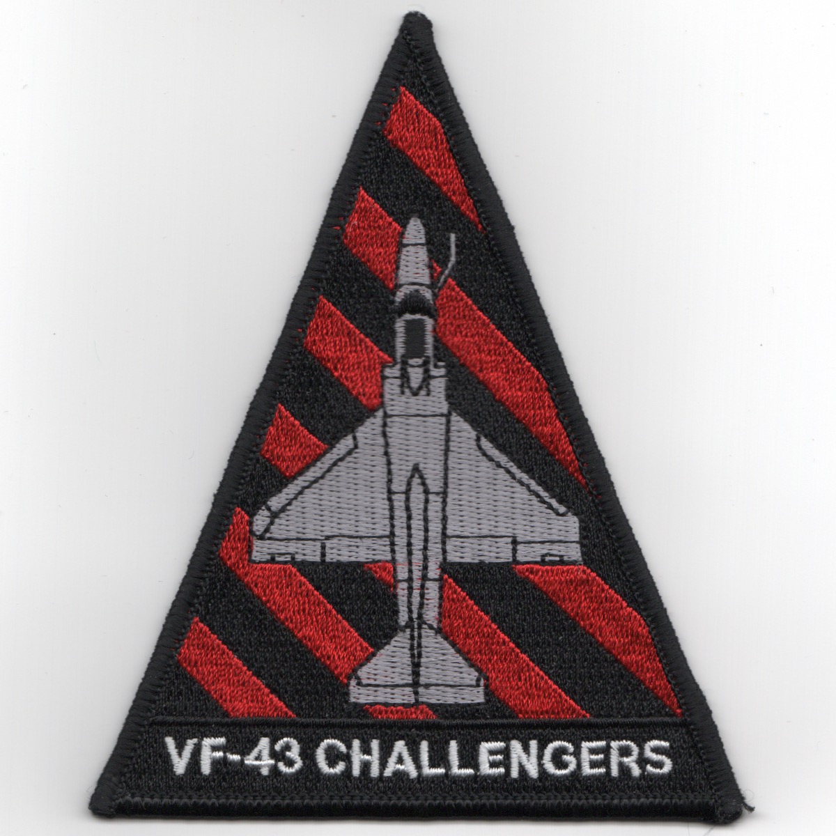 The ‘Challengers’ of VF-43 were established in May 1945 as VF-74A, then went through many name-changes: VF-74 in August 1945, VF-1B in November 1946, VF-21 in September 1948, VA-43 in July 1959, then VF-43 in June 1973. They operated a mix of Douglas A-4Fs and TA-4Fs Skyhawks, Northrop F-5E and F-5F Tigers, General Dynamics F-16N and TF-16Ns, and the North American T-2C Buckeyes, all for the sole purpose of providing air combat training to the Fleet fighter squadrons. This is their ‘A-4’ version of their aircraft triangle and does not have velcro.