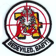 The Bedevilers of VF-74 flew the F-14B Tomcat out of NAS Oceana, VA, but have since been decommissioned. They began flying the Tomcat in 1983, flying against Libya in 1986 in Operation Prairie Fire (March) and Operation El Dorado (April) during their Med Cruise. They also participated in Operation Desert Storm before going the way of the Doo-doo Bird. This is the ‘Bedeviled’ felix patch they wore on their right sleeve of their flight suit.