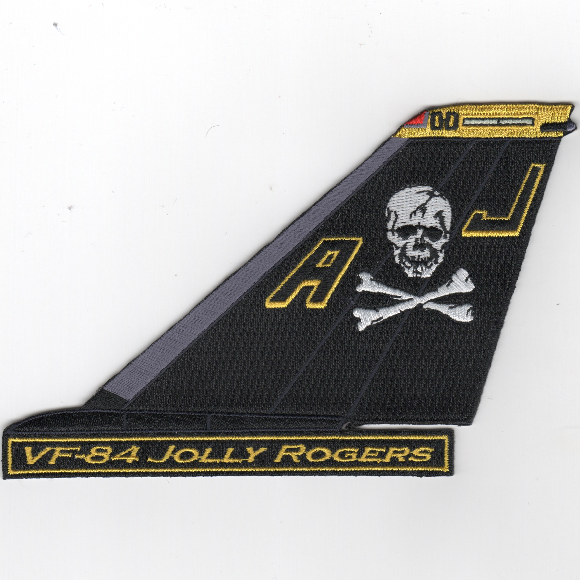 This is the F-14 Tomcat Tail Fin for VF-84 “”””Jolly Rogers”””” without the text. This version of the tailfin patch has the darker leading edge of the vertical tail.