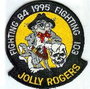 VF-84 was one of the oldest US Navy squadrons before decommissioning and transferring their name to VF-103. VF-103 was established in May 1952 and began the transition from F-4S Phantoms to the F-14A Tomcat in January 1983. The ‘Sluggers’ were with the USS Saratoga in CVW-17 for the majority of her time, before switching to the USS Enterprise. VF-103 adopted the “Skull and Crossbones” of VF-84 to continue their tradition. VF-103 had one of their TARPS-birds shot down by an optical SA-2 derivative in Desert Storm with the pilot being rescued and the RIO becoming a POW. This is the “transition” patch created for the transfer of the “Jolly Rogers” name.