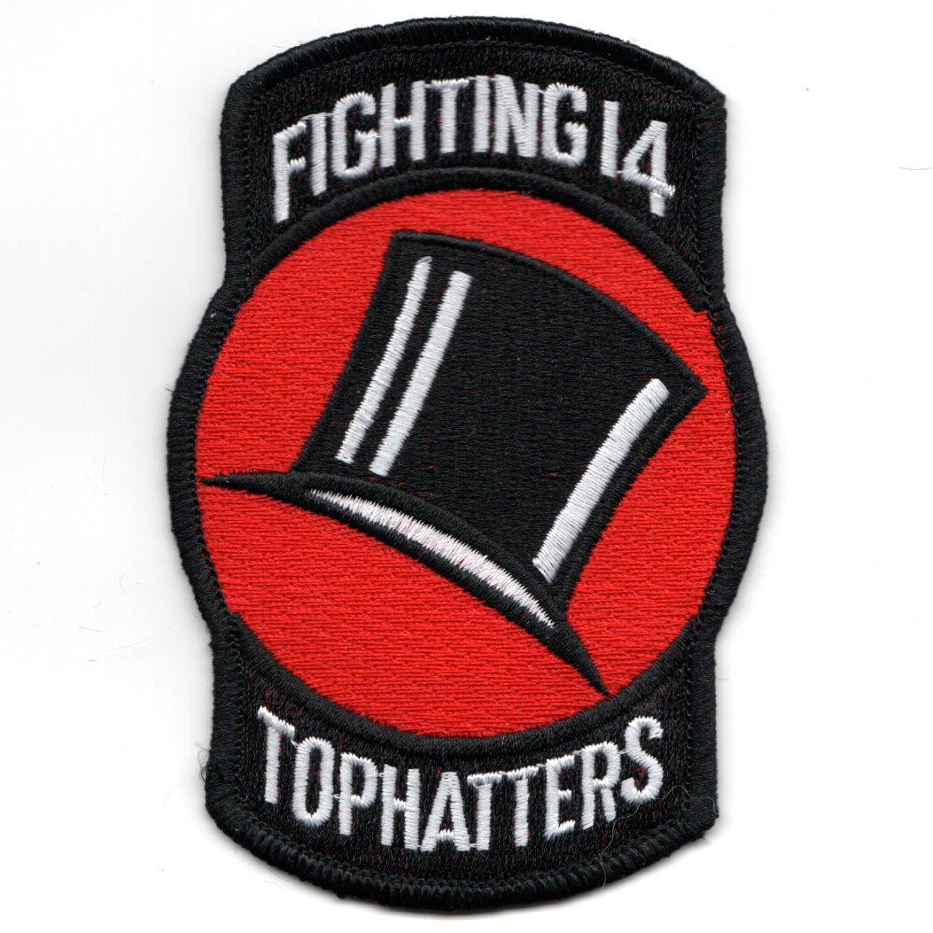 The “Tophatters” of VFA-14 from NAS Oceana flew the F-14A Tomcat and is the oldest US Navy squadron with a continuous history dating back to September 1919. They transition to their latest aircraft, the F/A-18 Hornet in December 2001, replacing the F-14 Tomcat. They participated in MANY conflicts/operations in their history, to include combat missions during Operation DESERT STORM. This is the RED/BLACK version of their squadron patch and does not have velcro attached.
