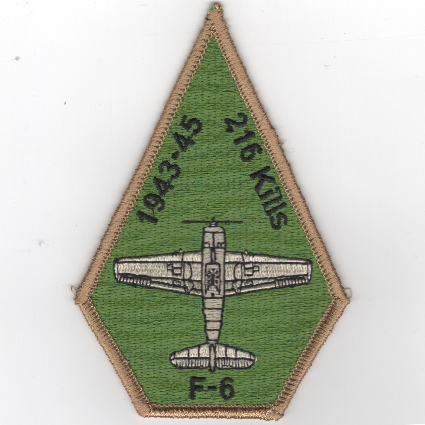 This (first version of this) patch was created by the squadron as another “legacy” patch commemorating the F6F, one of their lineage aircarft, having 216 kills from 1943-1945. This patch does not come with velcro attached.