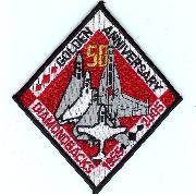 The VFA-102 “Diamondbacks” are located at NAS Lemoore, CA and fly the F/A-18 Hornet. They were established in July 1955, and transitioned from the F-4J Phantom to the F-14A Tomcat in July 1981 then to the F-18 Hornet in 2002. This is the diamond version of their 50th Anniversary patch.