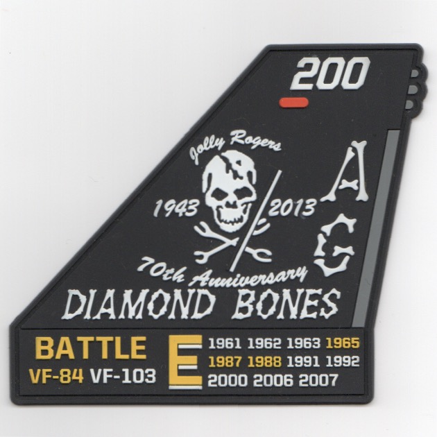 VFA-103 “family line” was established in May 1952 and began the transition from F-4S Phantoms to the F-14A Tomcat in January 1983, then to the F/A-18F in Dec 2004. This is the PVC version of their 2013 ‘Battle E’ award, depicting all the previous years they also were awarded the ‘E’, and does not come with velcro attached.