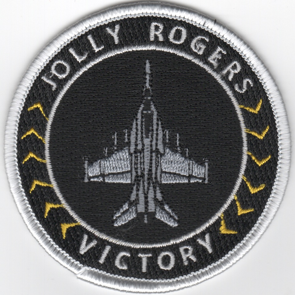 VFA-103 was established in May 1952 and began the transition from F-4S Phantoms to the F-14A Tomcat to the F/A-18F SuperHornet in 2005. The ‘Sluggers’ were with the USS Saratoga in CVW-17 for the majority of her time, before switching to the USS Enterprise. VF-103 adopted the “Skull and Crossbones” of VF-84 to continue their tradition. VF-103 had one of their TARPS-birds shot down by an optical SA-2 derivative in Desert Storm with the pilot being rescued and the RIO becoming a POW. This is the black version of their “VICTORY” bullet patch created by them and does not come with velcro attached.