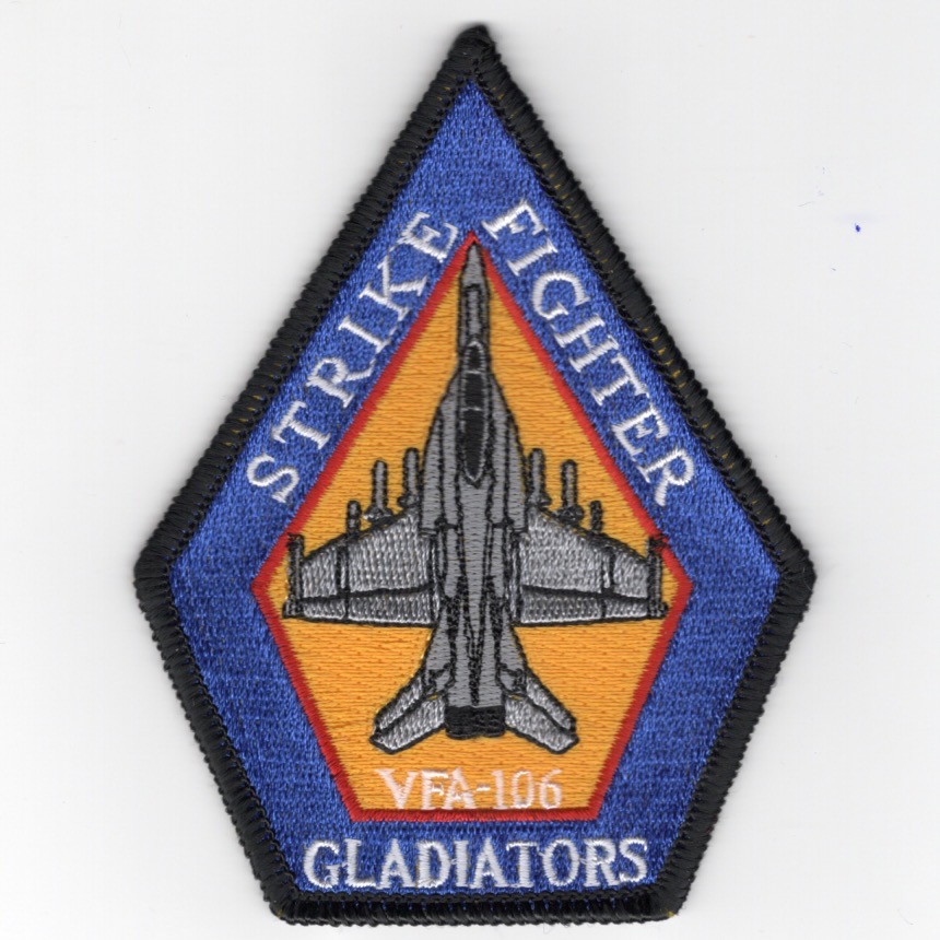 VFA-106 began operating on 27 April 1984 as the East Coast FRS (“RAG”) for the F/A-18A/B/C/D models at NAS Cecil Field, FL. They are now located at the Master Jet Base at NAS Oceana, VA where they train Navy, Marine, and foreign exchange pilots. This is the version with the blue (outer) / yellow (inner) of their aircraft “diamond” patch and does not come with velcro attached.
