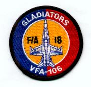 VFA-106 began operating on 27 April 1984 as the East Coast FRS (“RAG”) for the F/A-18A/B/C/D models at NAS Cecil Field, FL. They are now located at the Master Jet Base at NAS Oceana, VA where they train Navy, Marine, and foreign exchange pilots. This is the “round” version of their aircraft patch.